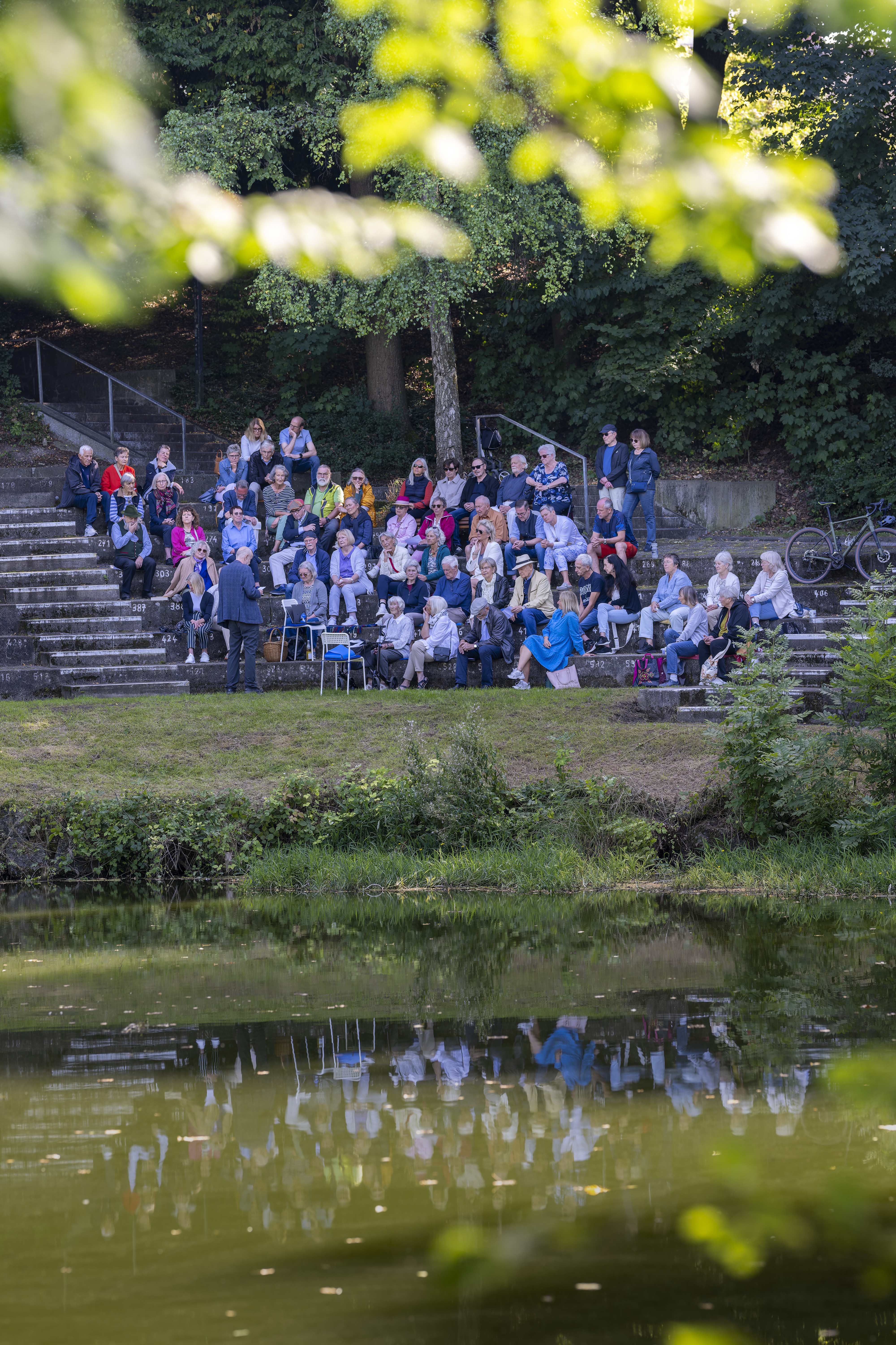 "Wasser, Fließen, Elemente". Rezitationen Alter Meister am stummen Brunnen von Markt Schwaben, 2025: Programm, Presseartikel, Foto am Brunnen: Walle, walle, manche Strecke.., Foto vor dem verfallenen Schloß: Des Sängers Fluch, Foto im Amphitheater des Schlossweihers: Halb zog sie ihn, halb sank er hin