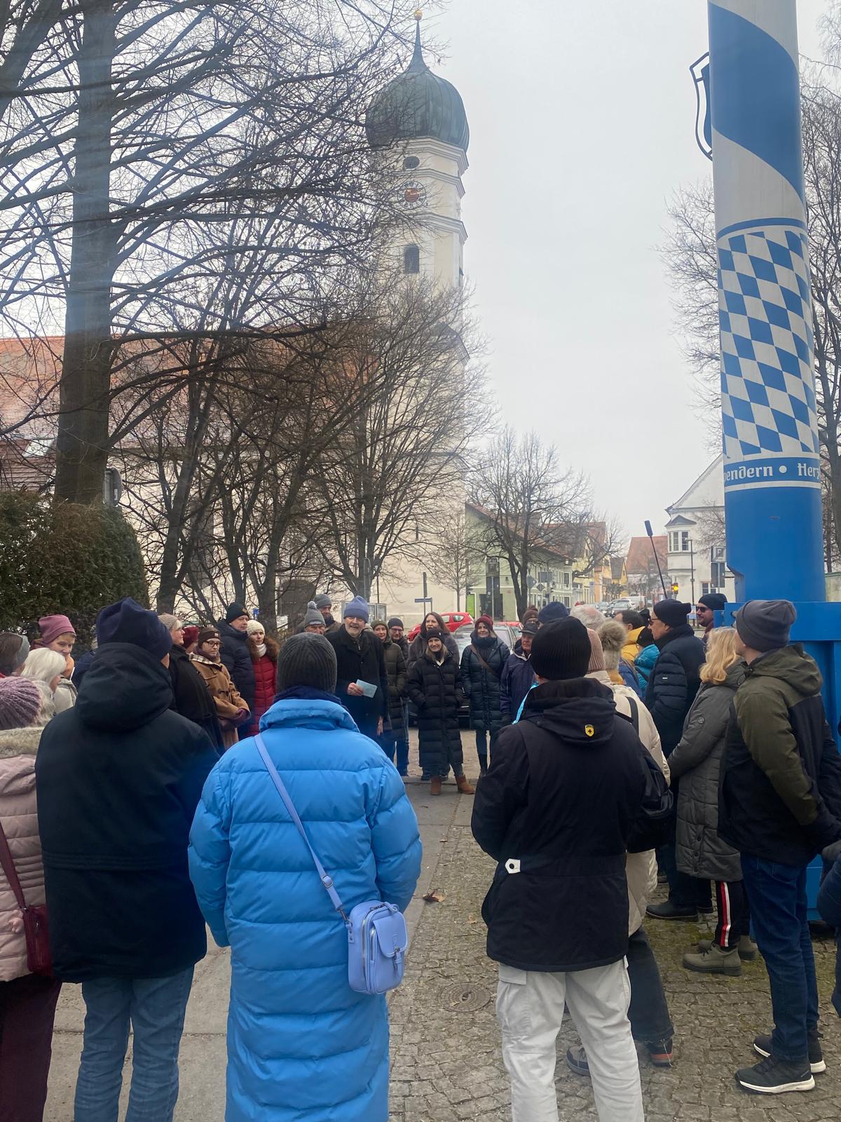 - HIST/POL : Der Einladung der freien Wählergruppe Zukunft Markt Schwaben zur Stadtführung am 24. Januar 2026 sind rund 75 Menschen gefolgt: Unsere Stationen waren Burg/Schloss/Rathaus samt Kirche und Unterbräu als Markt Schwabener Dreiklang; Kirchweiher und Gerichtsbotenhaus; Postanger mit Schlittenberg; Herzog-Ludwig-Straße zwischen Metzgerei Gantner und Bäckerei Hupfer; stummer Rathaus-Brunnen mit Blick auf Wasserturm; Marktplatz mit früherem Rathaus, Kino, Buchbinderei Sommer, Kinderbewahranstalt... und aktueller Brandruine; Bartschneiderweiher. Die Ankündigung mit dem illuminierten Unterbräu und Fotos unseres Fotografen Ernst Zimmermann finden Sie hier 1 und hier 2 und hier 3 und hier 4 und hier 5 und hier 6 und hier 7 und hier 8 und hier 9 und hier 10 und hier 11 und hier 12 und hier 13 und hier 14