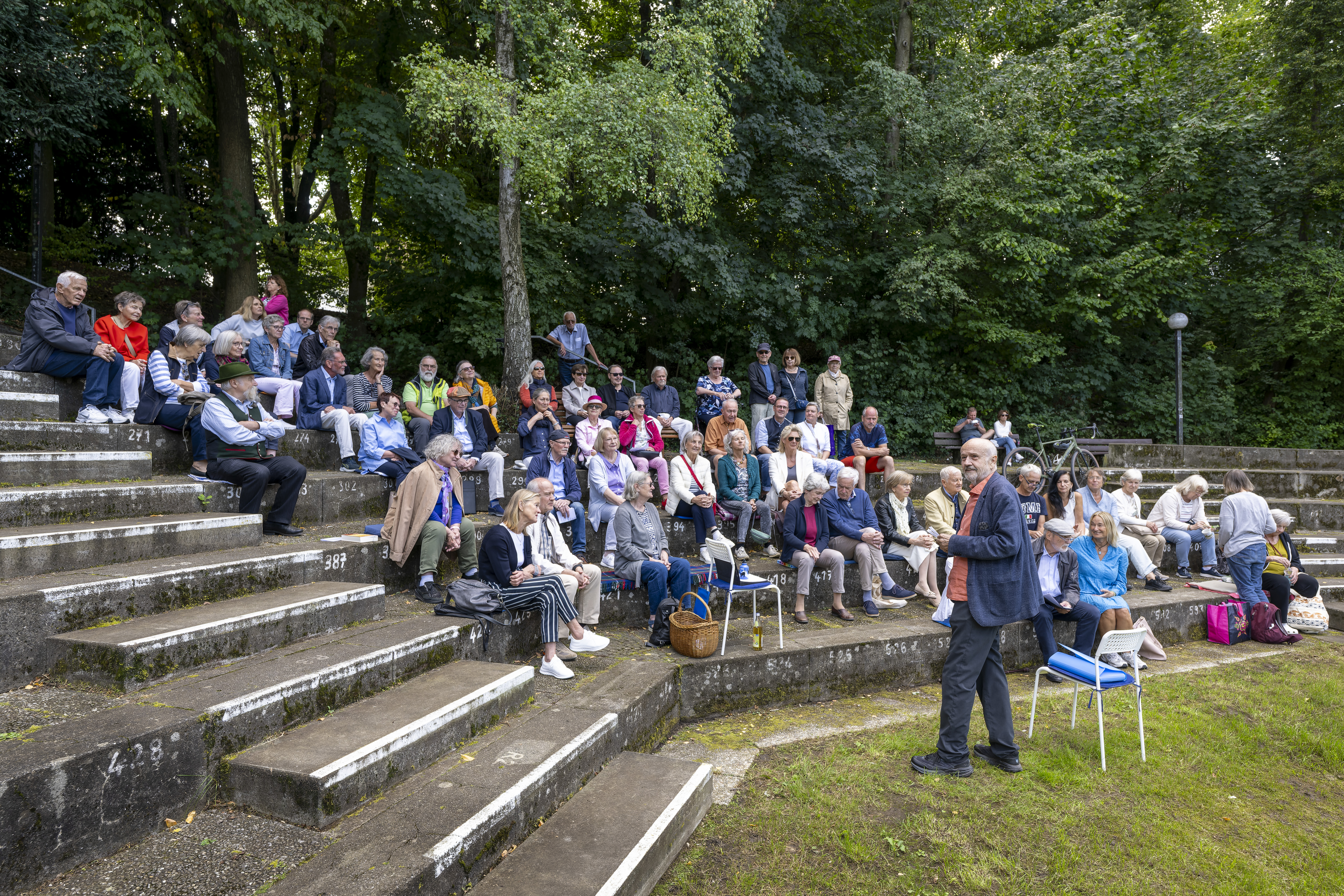 - LYR : Am Samstag, 4. September 2021, 17:00 bis ca. 18:00 Uhr habe ich eine Lesung auf der Lichtung am Rande des Biergartens der Hohenlindener Sauschütt mitten im Ebersberger Wald gehalten: aus meinem Lyrikband "Im Garten war Nacht. Vierzig Schutzgedichte für den armen Paul" habe ich Texte über Lügen, Leid, geschundene Lebewesen vorgetragen - und als Gegenpol Gedichte aus meinem aktuellen Buch "Kurz und glücklich. Vierzig Mantras für ein gutes Leben". Rund zwanzig Menschen und zwei Hunde waren dabei, musikalisch mit dem Hümmelchen, einem kleinen sanften Dudelsack, begleitet hat mich der Naturschützer und Naturethiker Dr. Wolfgang Epple. Erste Fotos finden Sie hier und hier und hier und hier.
