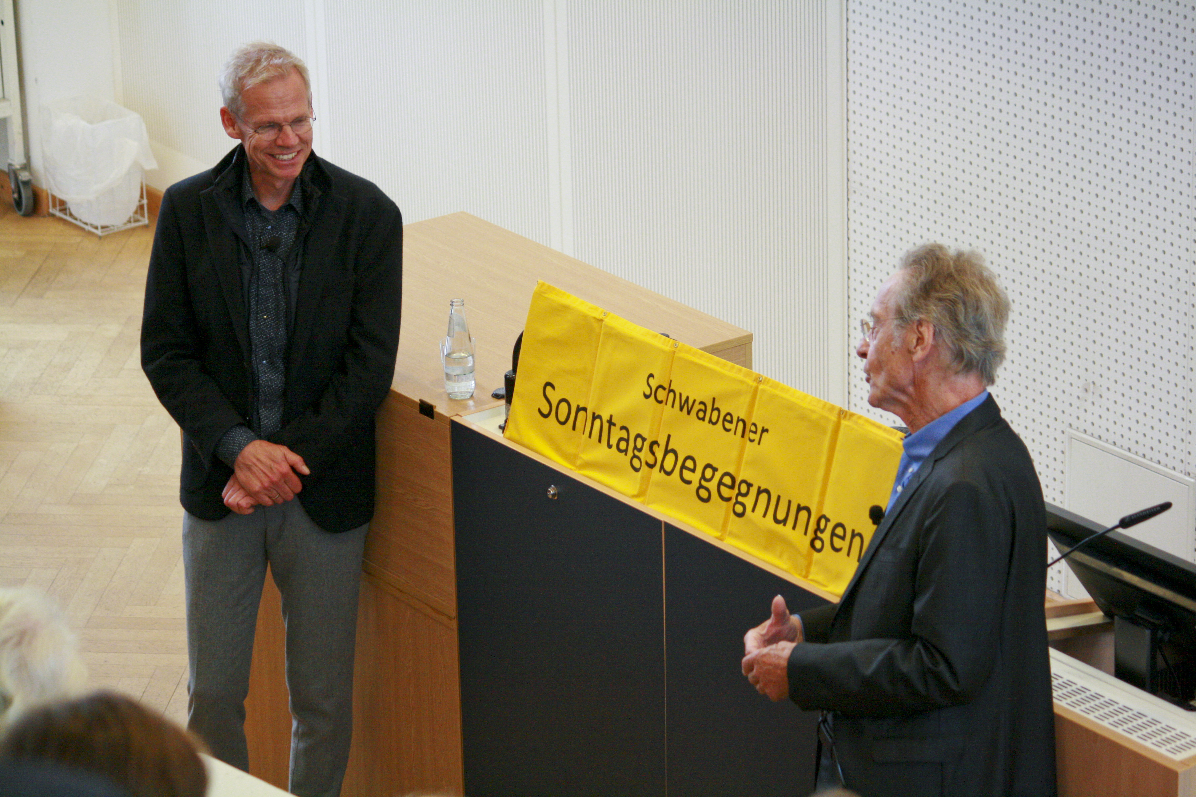 - SOB: Bei unserer 124. Sonntagsbegegnung, der vierten in Berlin, unterhielten sich am 2. November 2025 die Schriftsteller Bernhard Schlink ("Der Vorleser") und Dirk von Petersdorff ("Der Ewige Brunnen") in einem tiefgehenden und spannenden Zwiegespräch über das Thema "Gefühle". Auch aktuelle außenpolitische Entwicklungen, was wir aus der Corona-Zeit lernen können und die Lieblingsgedichte der beiden Dialogpartner kamen zur Sprache.